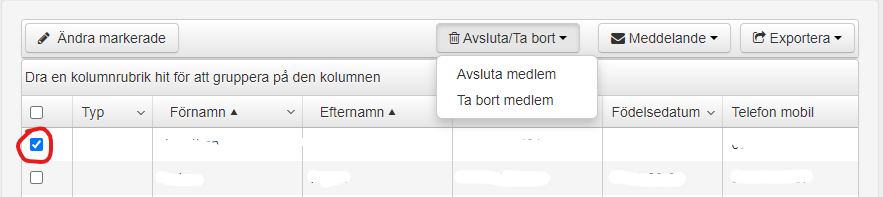 - Avsluta medlem behåller sökbarheten och alla uppgifter om personen sparas vilket kan vara bra om personen blir medlem igen.