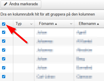 För att markera samtliga medlemmar på samma sida - klicka på boxen längst upp i den vänstra kolumnen.
